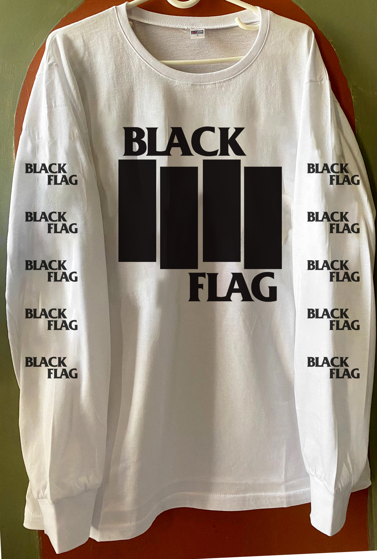 Black Flag – Logo – White Longsleeve Tshirt