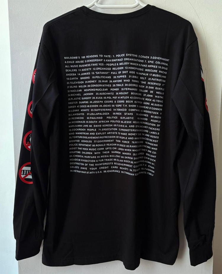 Nailbomb – 100 Reasons to Hate – LongSleeve Tshirt with back print.